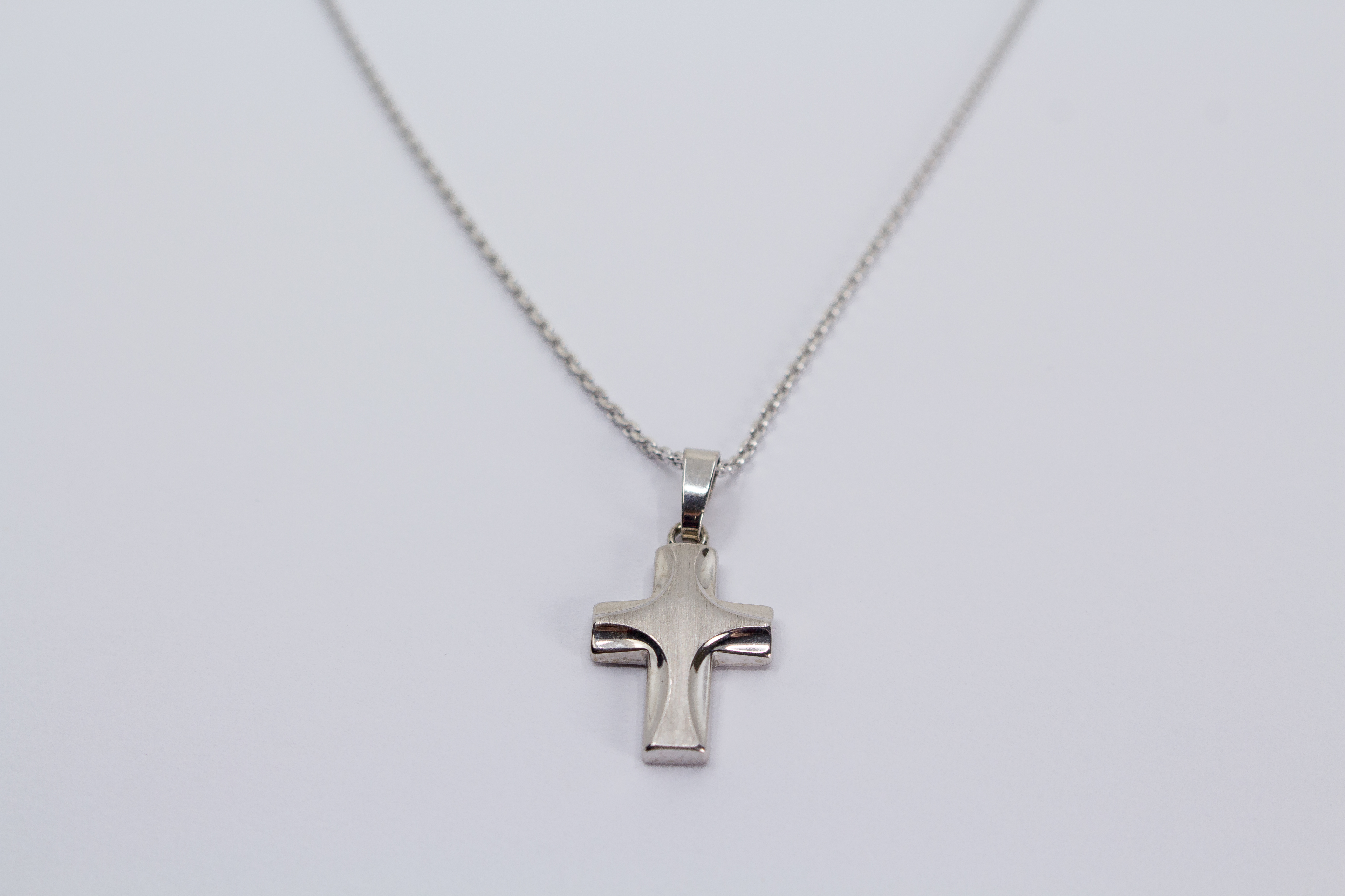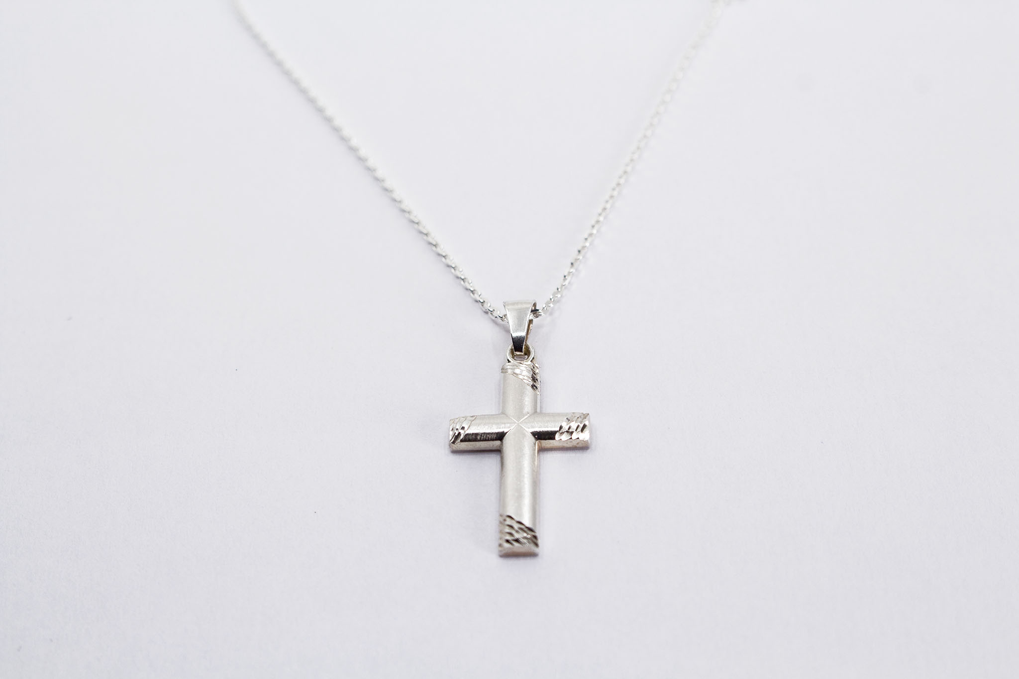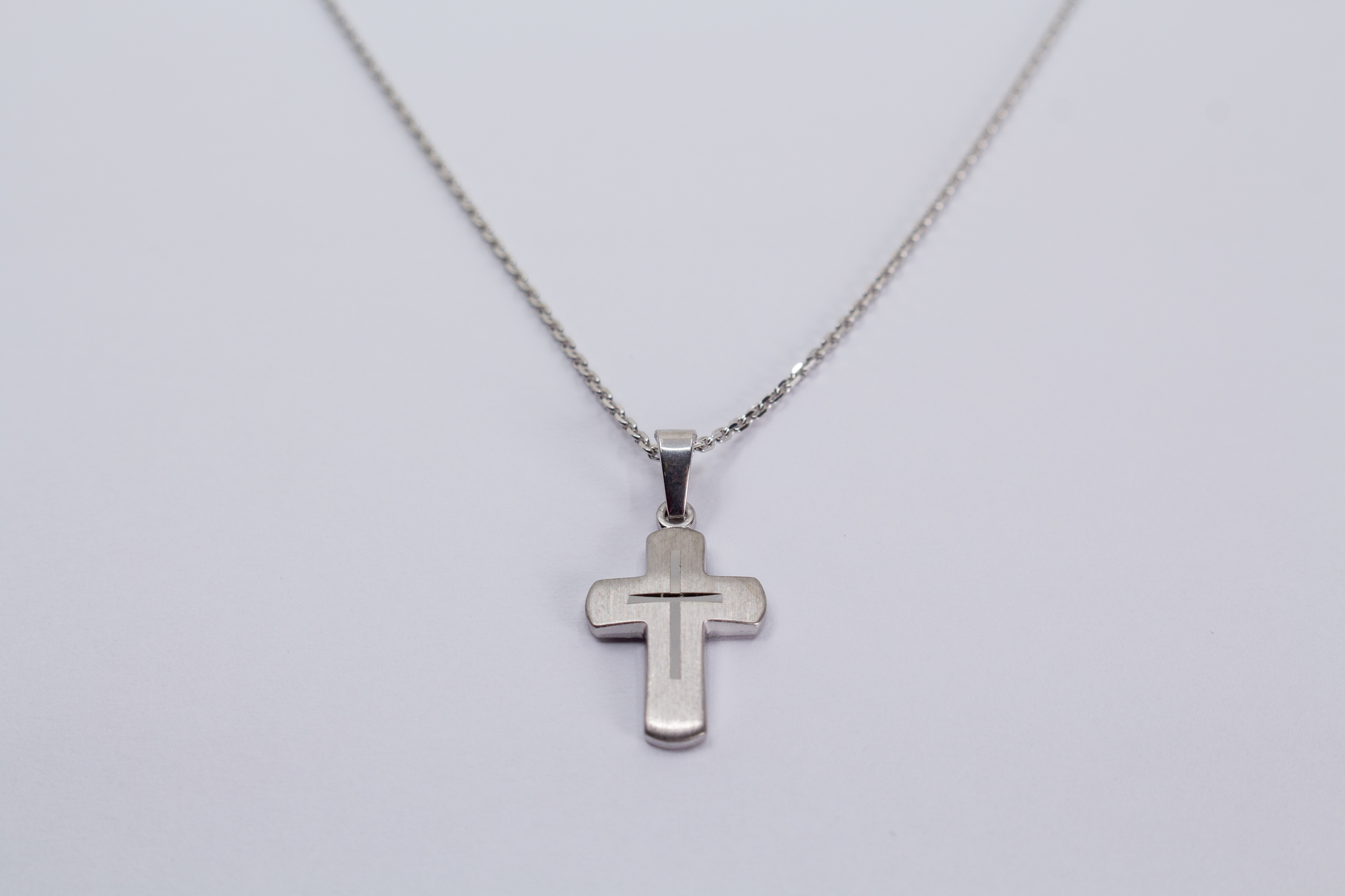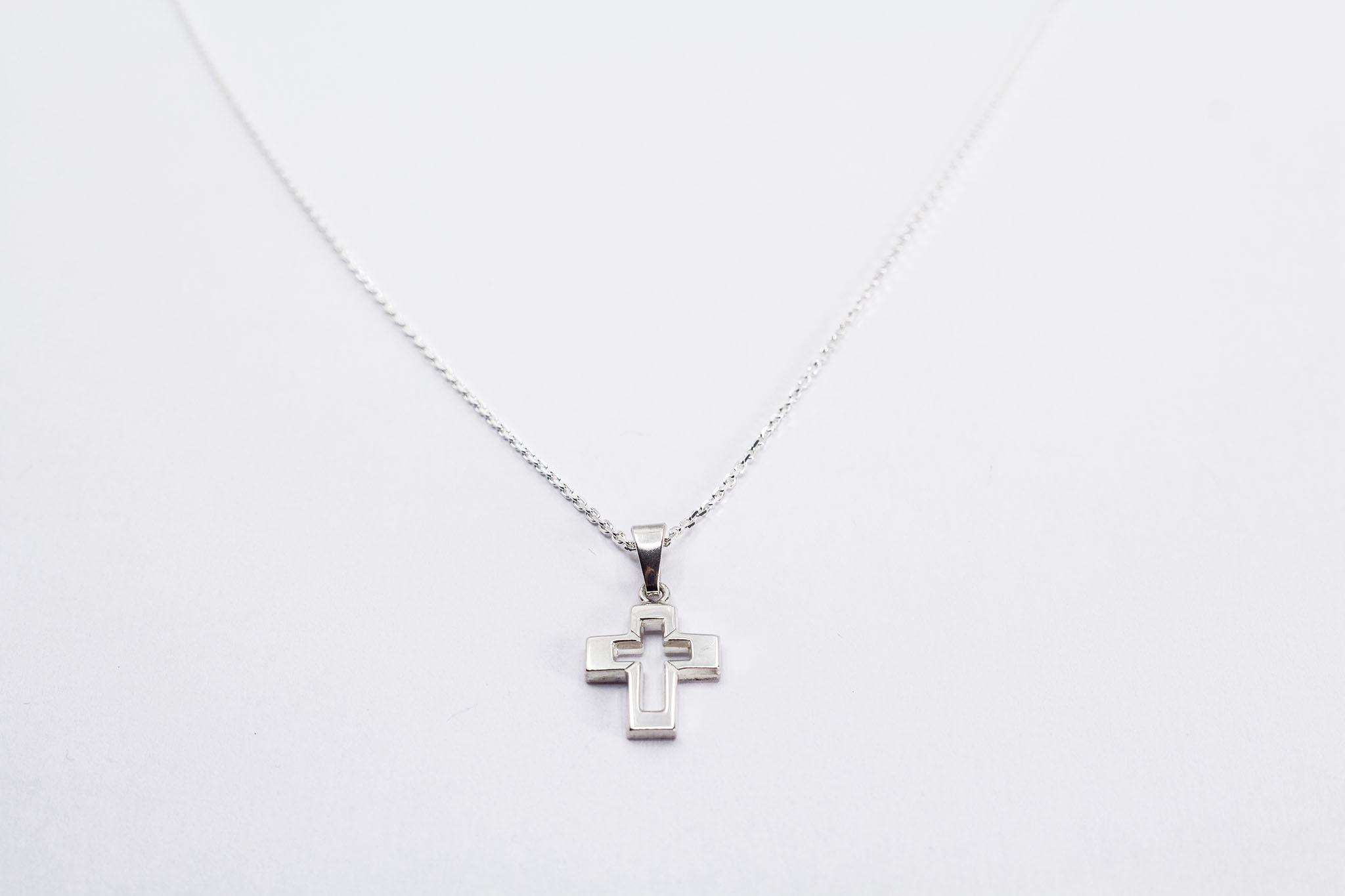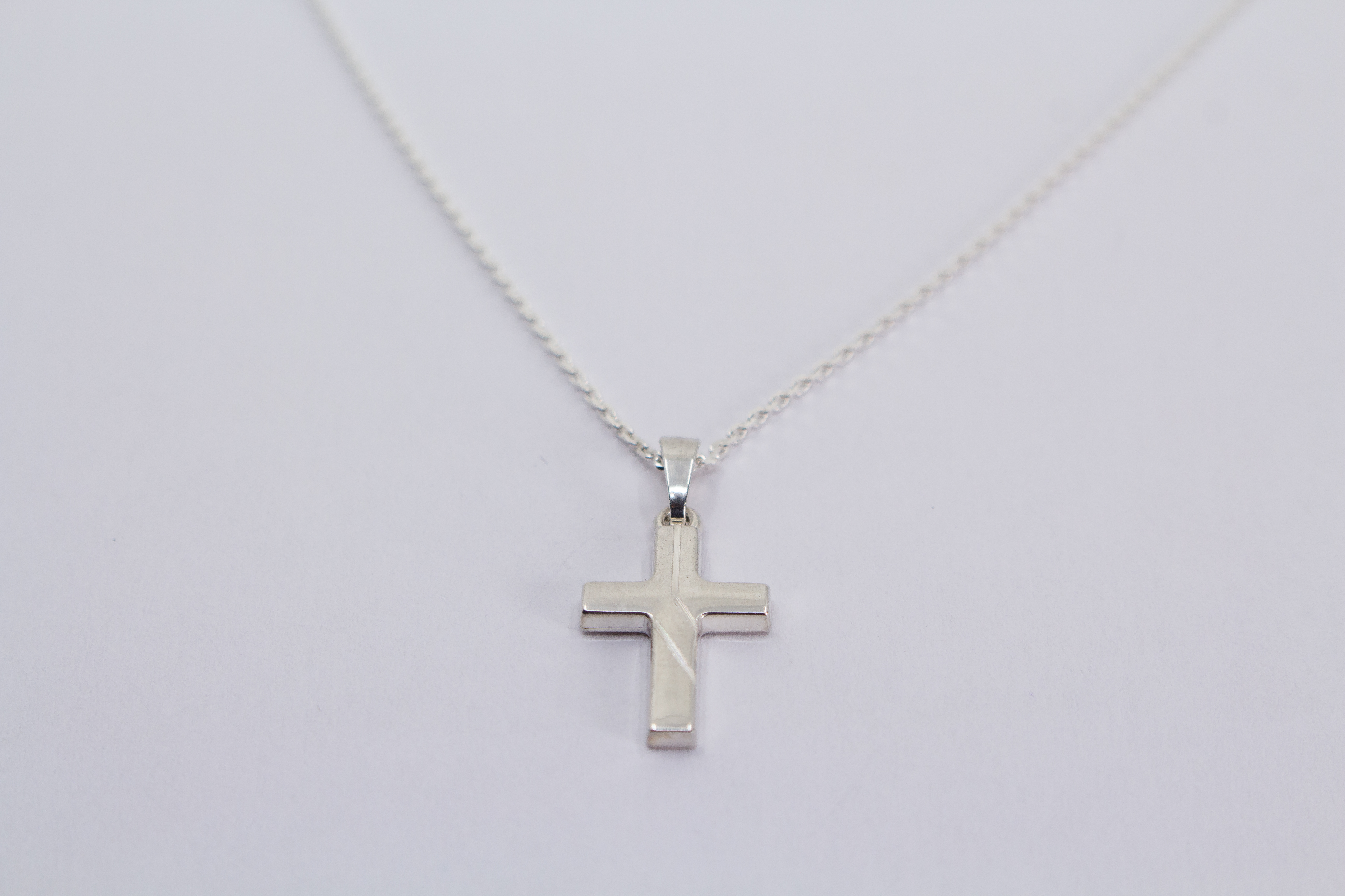 Mit dieser wunderschönen Kette werden Sie zum Blickfang auf jeder Kommunion, Konfirmation oder Taufe. Sie besteht aus 925 Sterlingsilber, welches zusätzlich rhodiniert wurde. Dadurch erhält die Kette einen eleganten und zeitgemäßen Look. Die Kette hat eine Länge von 42cm und ist somit perfekt für jeden Hals geeignet. Der Federring-Verschluss ist ebenfalls aus 925 Sterlingsilber und rhodiniert. Das Kreuz-Anhänger hat eine Größe von 2,7cm x 1,2cm. Die zarte Kette hat einen Durchmesser von 1,3mm und ist somit angenehm zu tragen. Gönnen Sie sich oder Ihren Liebsten diesen einzigartigen und hochwertigen Schmuck als Erinnerung an einen besonderen Anlass.Kettendurchmesser 1,3mmMaße Kreuz mit Öse 2,7cm x1,2cm