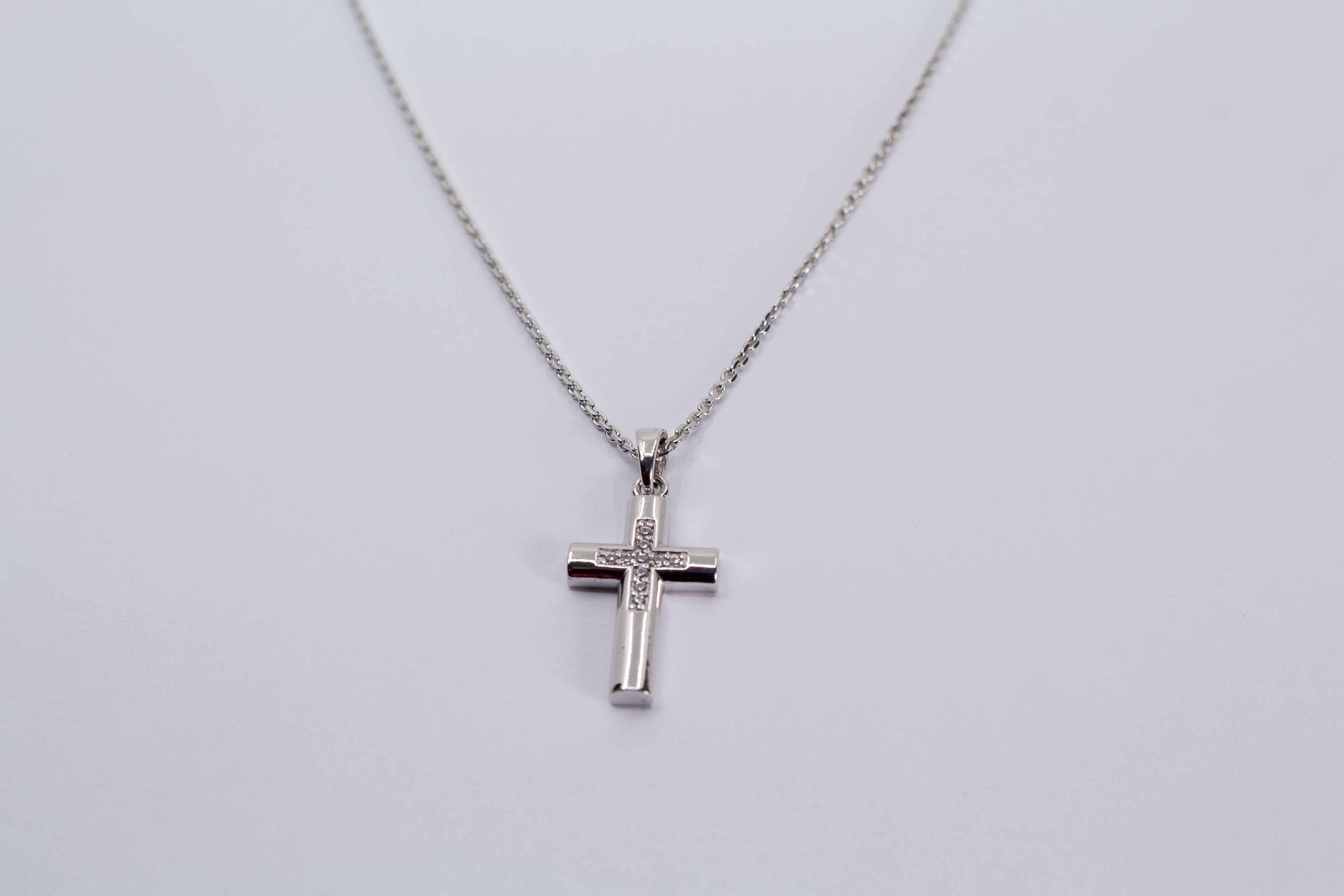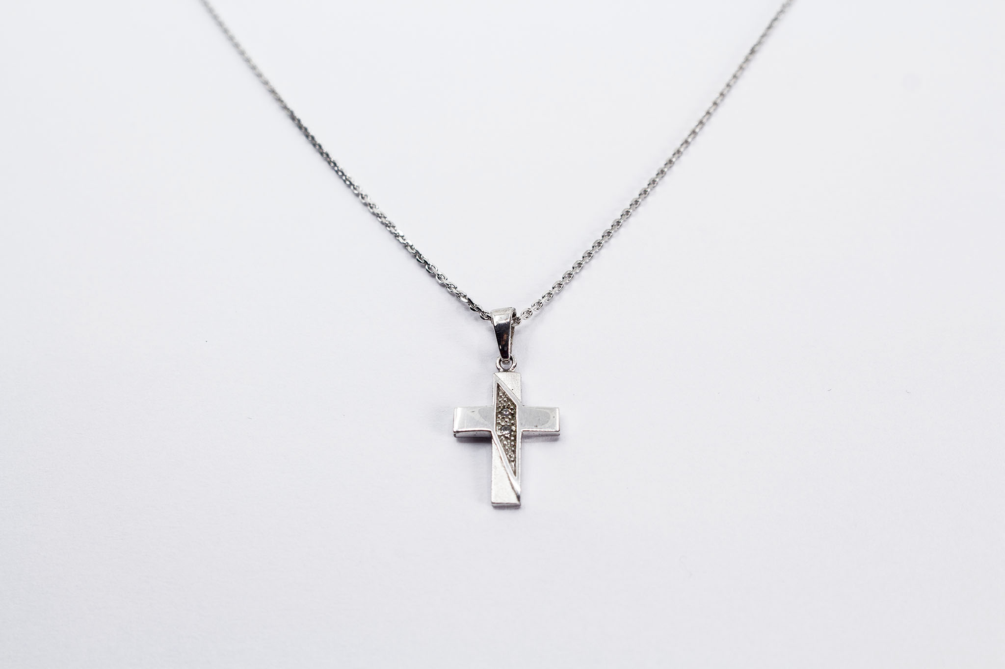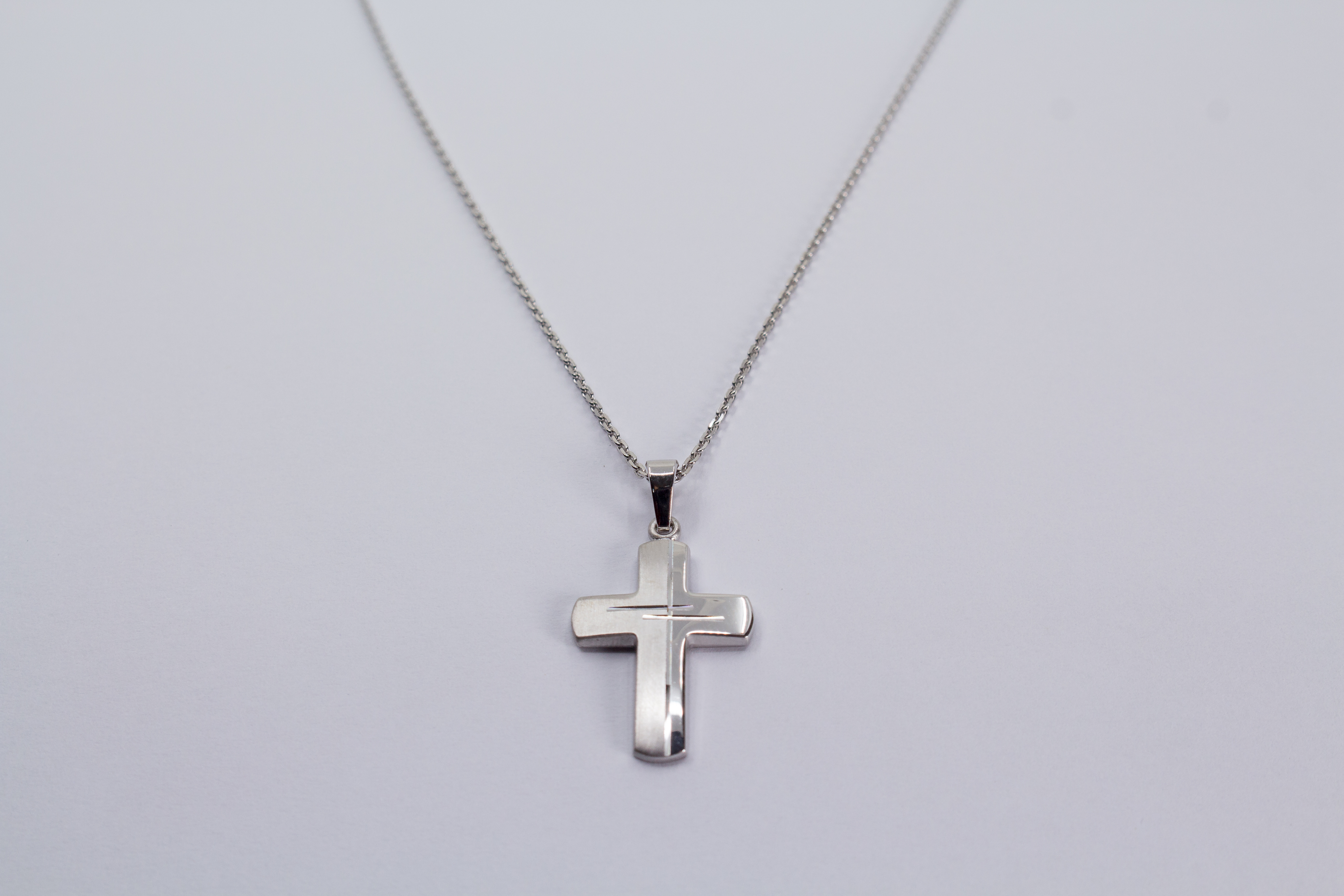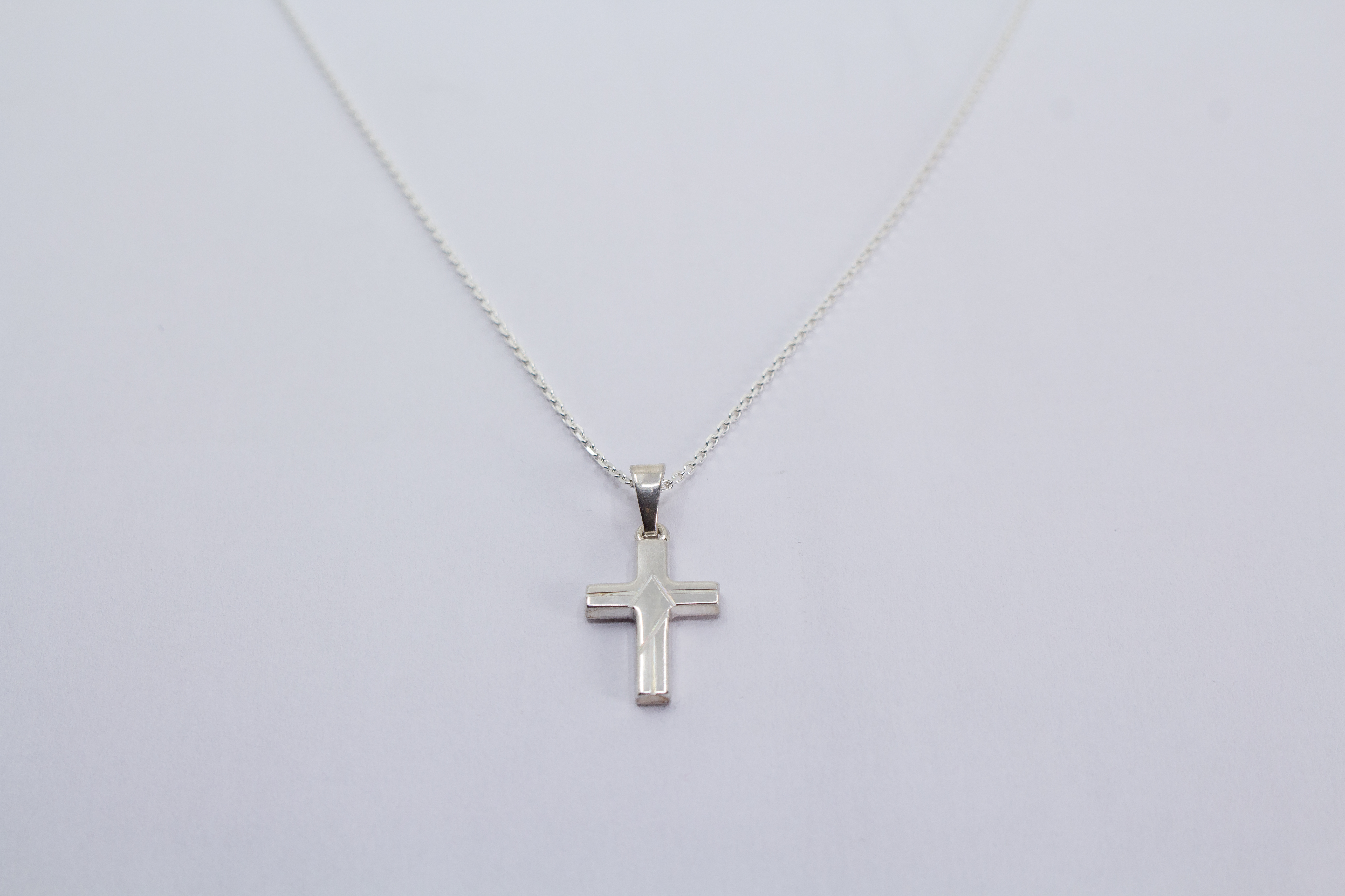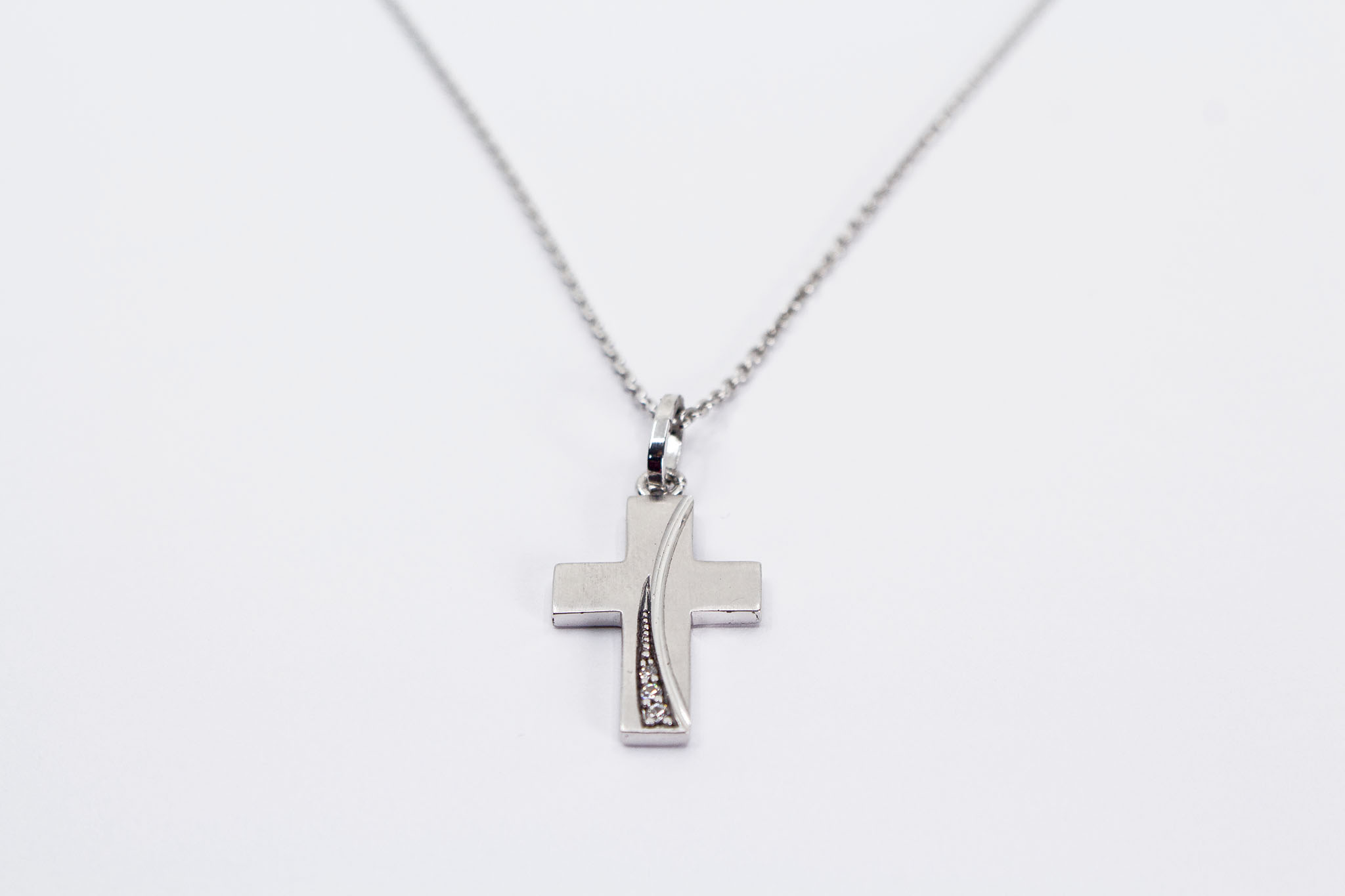 Mit dieser wunderschönen Kette werden Sie zum Blickfang auf jeder Kommunion, Konfirmation oder Taufe. Sie besteht aus 925 Sterlingsilber, welches zusätzlich rhodiniert wurde. Dadurch erhält die Kette einen eleganten und zeitgemäßen Look. Die Kette hat eine Länge von 42cm und ist somit perfekt für jeden Hals geeignet. Der Federring-Verschluss ist ebenfalls aus 925 Sterlingsilber und rhodiniert. Das Kreuz-Anhänger hat eine Größe von 2,7cm x 1,2cm. Die zarte Kette hat einen Durchmesser von 1,3mm und ist somit angenehm zu tragen. Gönnen Sie sich oder Ihren Liebsten diesen einzigartigen und hochwertigen Schmuck als Erinnerung an einen besonderen Anlass.Kettendurchmesser 1,3mmMaße Kreuz mit Öse 2,7cm x1,2cm