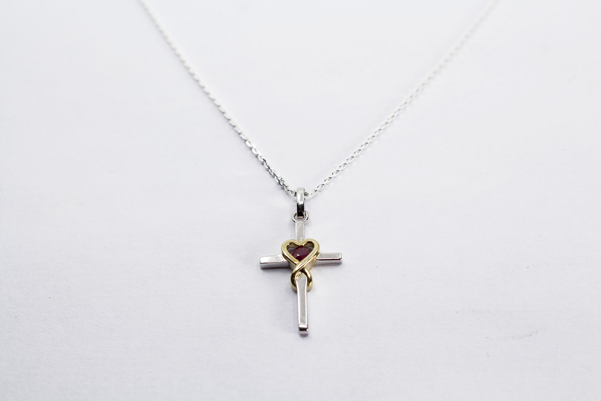 Das Collier Kreuz Rubin ist ein wunderschönes Schmuckstück für besondere Anlässe, wie Kommunion, Konfirmation oder Taufe. Das Kreuz, gefertigt aus hochwertigem 925 Sterling Silber, teilweise vergoldet, ist mit einem funkelnden Rubin veredelt. Durch die sorgfältige Verarbeitung des Materials und die filigrane Größe des Kreuzes mit einer Abmessung von 2,6 cm x 1,3 cm inklusive Öse, erstrahlt es in eleganter Schlichtheit. Mit seiner Kettenlänge von 42 cm und einem Durchmesser von 1,3 mm passt es perfekt an jeden Hals. Der Federringverschluss aus 925 Sterlingsilber sorgt für einen sicheren Halt. Das Collier Kreuz Rubin ist eine einzigartige Kombination aus zeitloser Eleganz und spiritueller Symbolik. Es eignet sich auch ideal als Geschenk für einen lieben Menschen oder als persönliches Andenken an einen besonderen Tag. Bestellen Sie jetzt dieses zauberhafte Collier und zeigen Sie Ihre Verbundenheit mit dem Glauben und Ihrer individuellen Schönheit.Maße Kreuz mit Öse 2,6cm x 1,3cmKettenlänge 42cmKettendurchmesser 1,3mm