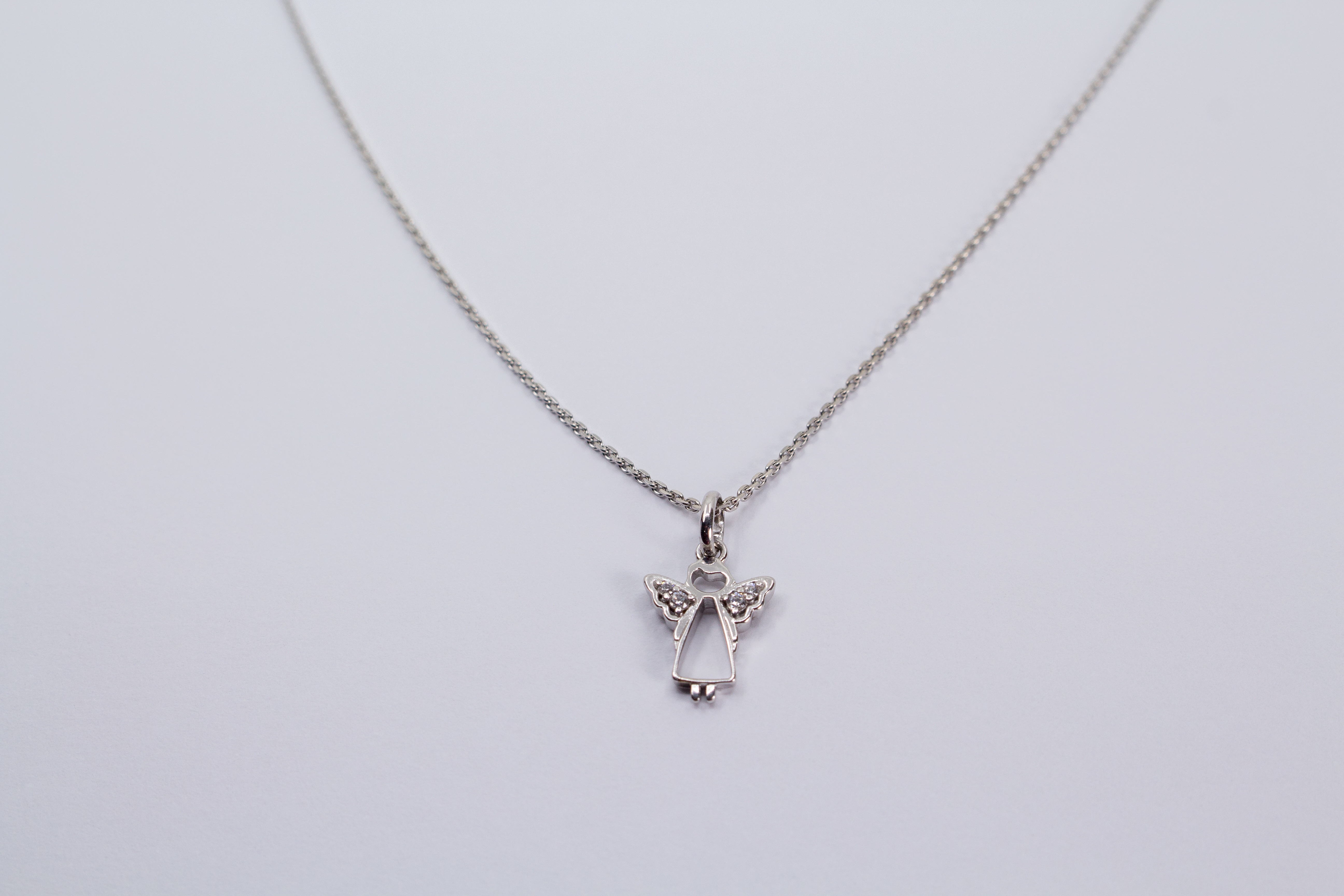 Die Kette Engelchen ist ein wunderschönes Schmuckstück aus hochwertigem 925 Sterlingsilber, rhodiniert, welches durch seine filigrane Gestaltung begeistert. Das Kreuzanhängerchen ist mit funkelnden Zirkonia besetzt und verleiht der Kette einen zarten Glanz. Die Länge der Kette beträgt 42cm und der Federring-Verschluss besteht ebenfalls aus robustem 925 Sterlingsilber, rhodiniert. Durch den Durchmesser von 1,3mm ist die Kette angenehm zu tragen und passt sich perfekt Ihrem Hals an. Das niedliche Engelchen mit den Maßen von 1,8cm x 1cm ist ein besonderer Blickfang und symbolisiert Schutz und Geborgenheit. Die perfekte Wahl als Kommunions-, Konfirmations- oder Taufschmuck. Verleihen Sie Ihrem Auftritt eine himmlische Note mit dieser zauberhaften Kette.Kettendurchmesser 1,3mmMaße Engel mit Öse 1,8cm x 1cm
