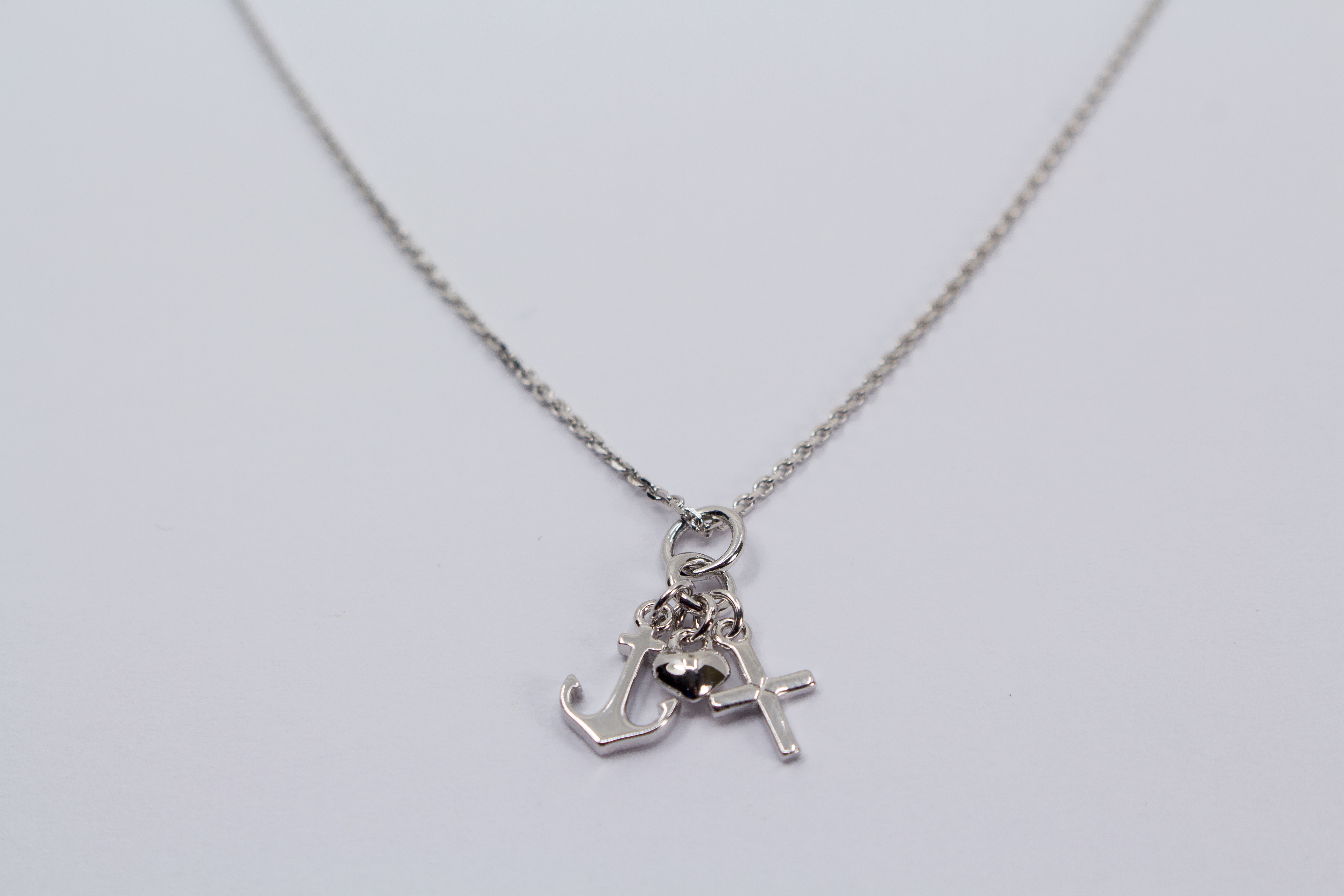 Diese elegante Kette mit Glaube, Liebe und Hoffnung Anhänger ist aus hochwertigem 925 Sterlingsilber gefertigt und aufwendig rhodiniert. Die Kombination von Glaube, Liebe und Hoffnung ist ein zeitloses Motiv und passt perfekt zu besonderen Anlässen wie Taufen, Kommunionen oder Konfirmationen. Mit einer Länge von 42 cm und einem Federring-Verschluss aus 925 Sterlingsilber gewährleistet die Kette einen sicheren Halt. Der Anhänger hat eine Größe von 2 cm (inklusive Öse) und ist somit ein dezentes und dennoch aussagekräftiges Schmuckstück. Gönnen Sie sich oder einem geliebten Menschen diese wertvolle Kette als Symbol für Glaube, Liebe und Hoffnung.Kettenlänge 42cmKettendurchmesser 1,3mmLänge Anhänger mit Öse 2cm