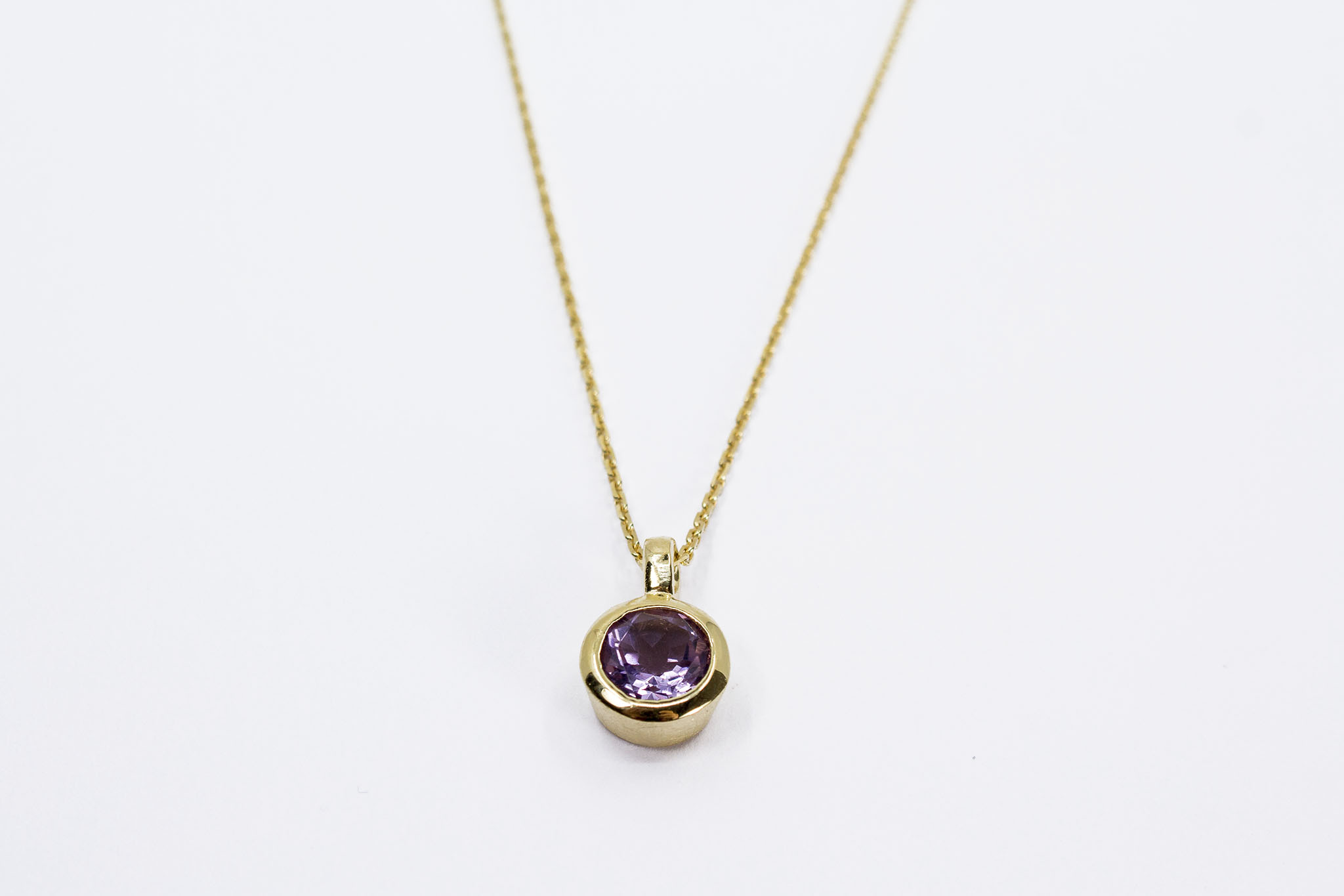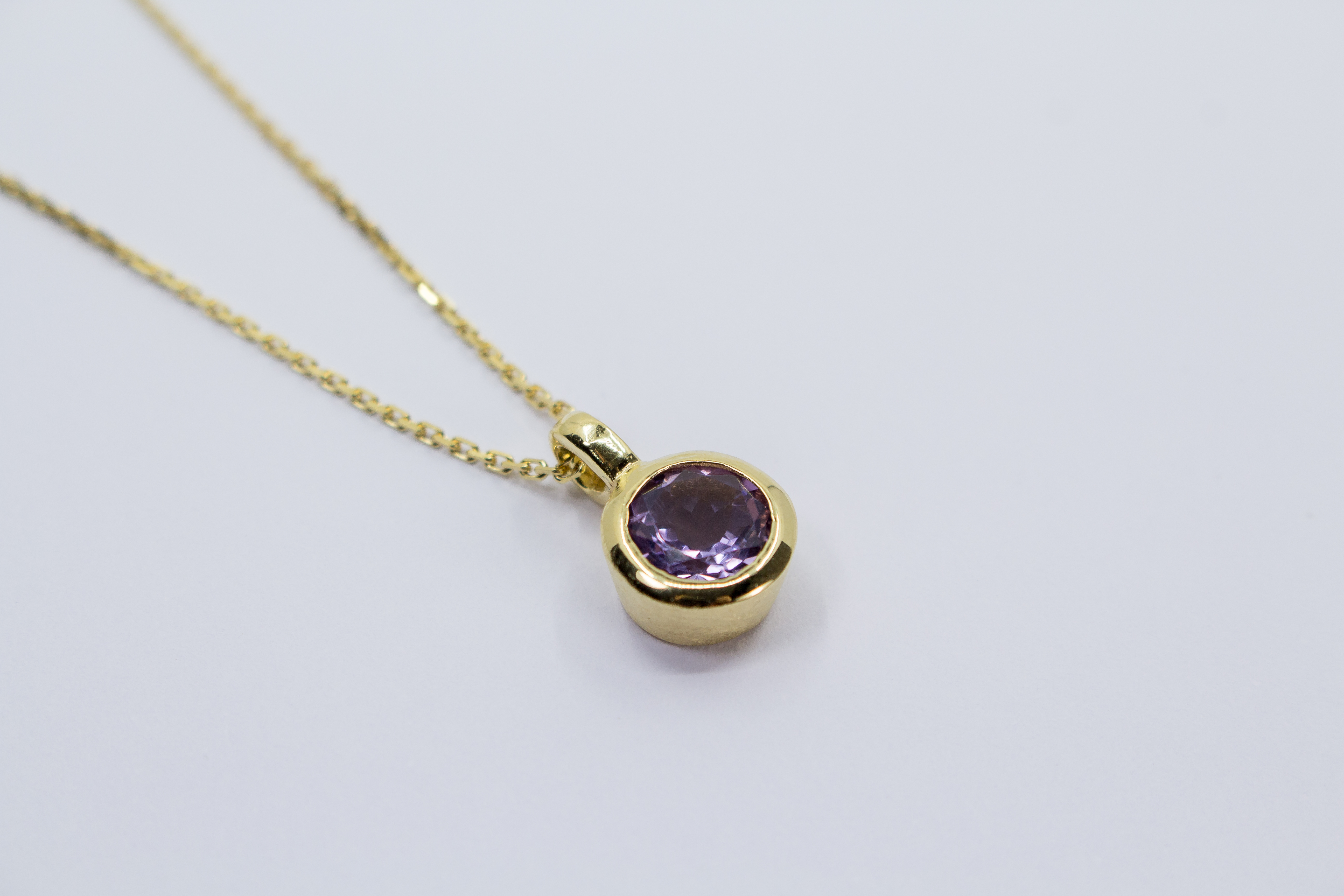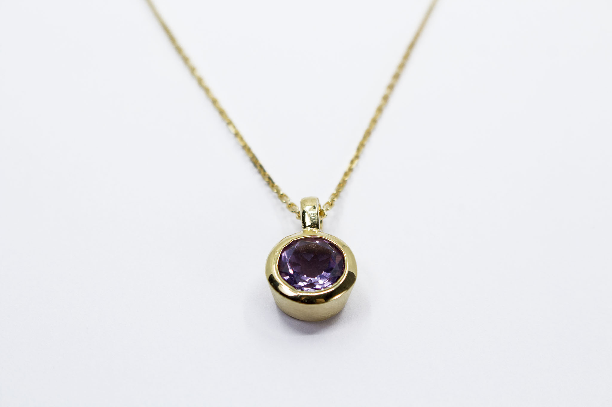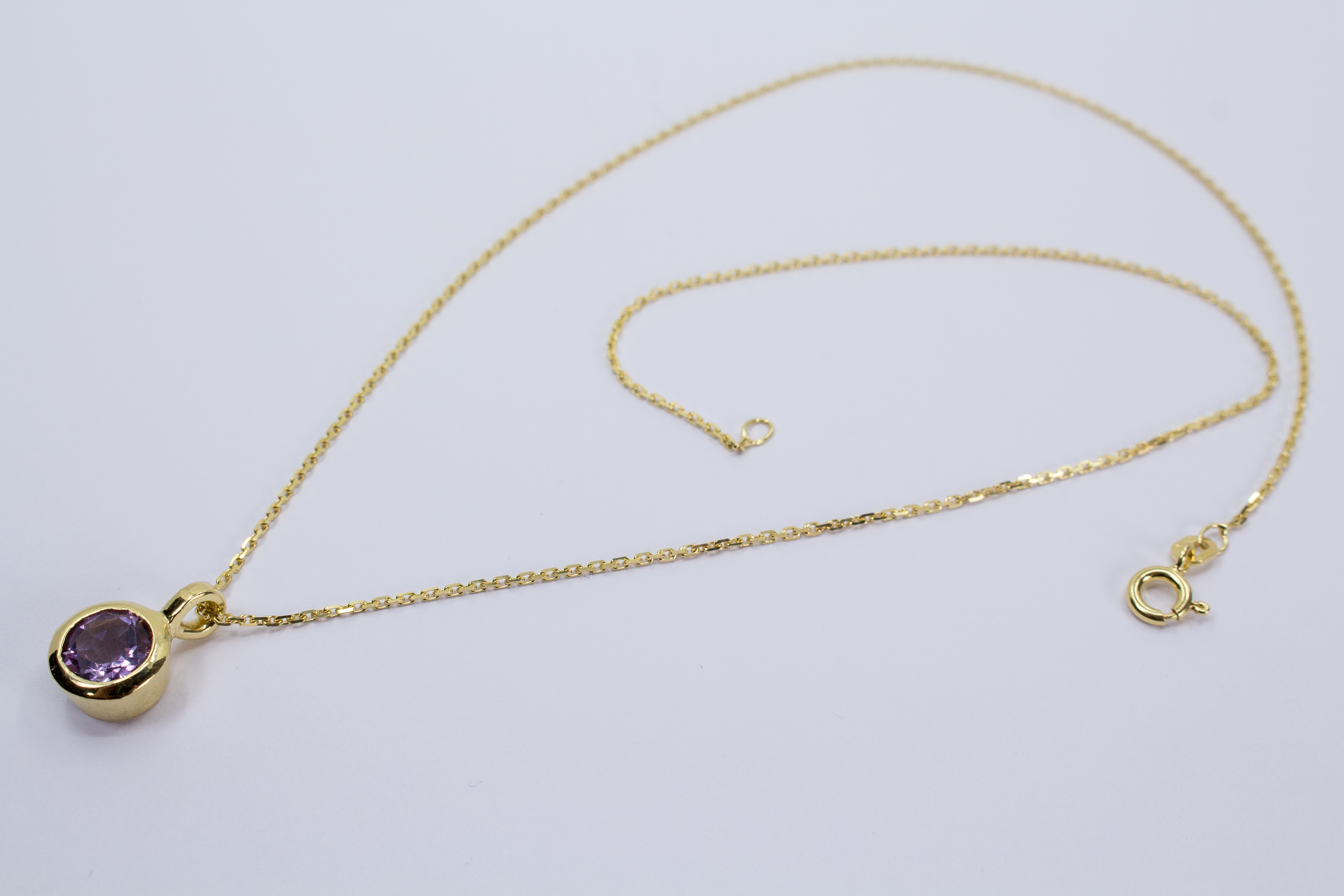 Entdecken Sie das exquisit gefertigte Collier Amethyst, ein edles Schmuckstück, das zeitlose Eleganz und moderne Raffinesse vereint. Gefertigt aus hochwertigem 925 Sterling Silber und stilvoll vergoldet, beeindruckt dieses Collier durch einen funkelnden Amethyst-Anhänger mit den Maßen 10 mm x 16 mm. Die 45 cm lange Kette legt sich sanft um Ihren Hals und sorgt für einen angenehmen Tragekomfort. Der praktische Federringverschluss, ebenfalls aus vergoldetem 925 Sterling Silber, garantiert sicheren Halt und einfaches Anlegen.Der intensiv violette Amethyst gilt als Edelstein der Inspiration und Kreativität und setzt einen edlen Akzent in jedem Outfit. Ob für besondere Anlässe oder als stilvolles Accessoire im Alltag – mit dem Collier Amethyst setzen Sie ein Statement für Stilbewusstsein und Individualität. Ergänzen Sie Ihr Schmuckkästchen um dieses luxuriöse Collier und genießen Sie die zeitlose Schönheit und die hohe Qualität edler Materialien.
