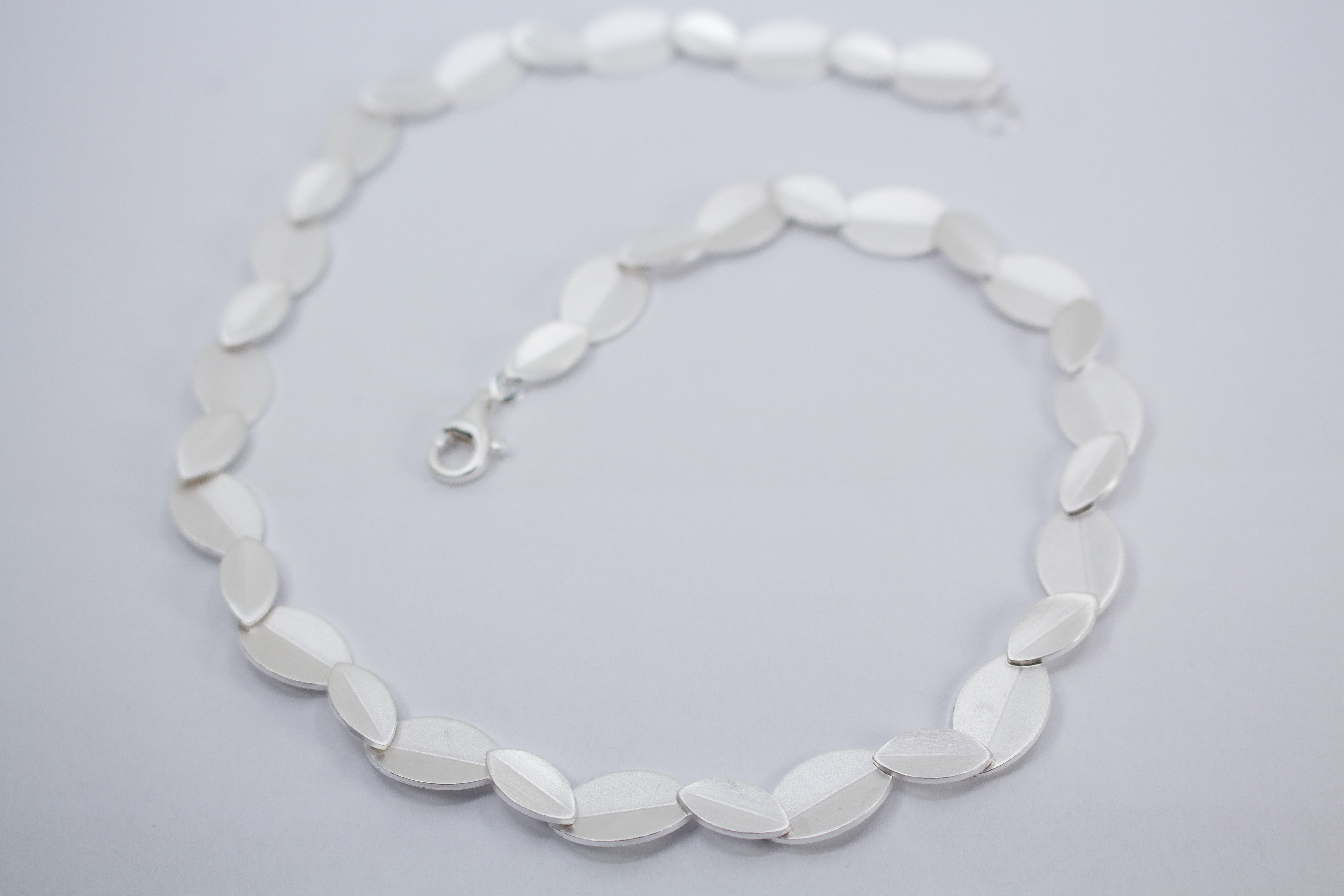 Entdecken Sie das elegante Collier Juliette – ein zeitloses Schmuckstück, das Ihr Outfit auf stilvolle Weise ergänzt. Das Collier besteht aus hochwertigem 925 Sterling Silber und überzeugt durch seine feine Verarbeitung. Mit einer Kettenlänge von 43 cm schmiegt es sich angenehm an Ihr Dekolleté und sorgt für einen edlen Blickfang. Die filigranen Blättchen-Motive in den Maßen 9,4 mm x 15 mm sowie 6 mm x 12 mm verleihen der Kette ihre besondere Note. Ein sicherer Karabinerverschluss aus 925 Sterling Silber bietet zuverlässigen Halt. Lassen Sie sich vom Charme dieses Schmuckstücks begeistern und bestellen Sie Ihr Collier Juliette ganz bequem – Schmuck online kaufen war noch nie so einfach.