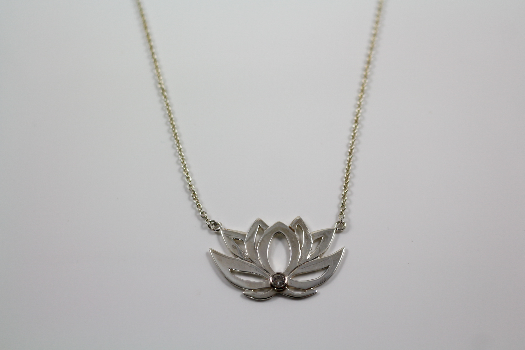 Collier aus 925 Sterling Silber und BergkristallMaße Lotusblüte 4,2cm x 2,7cm