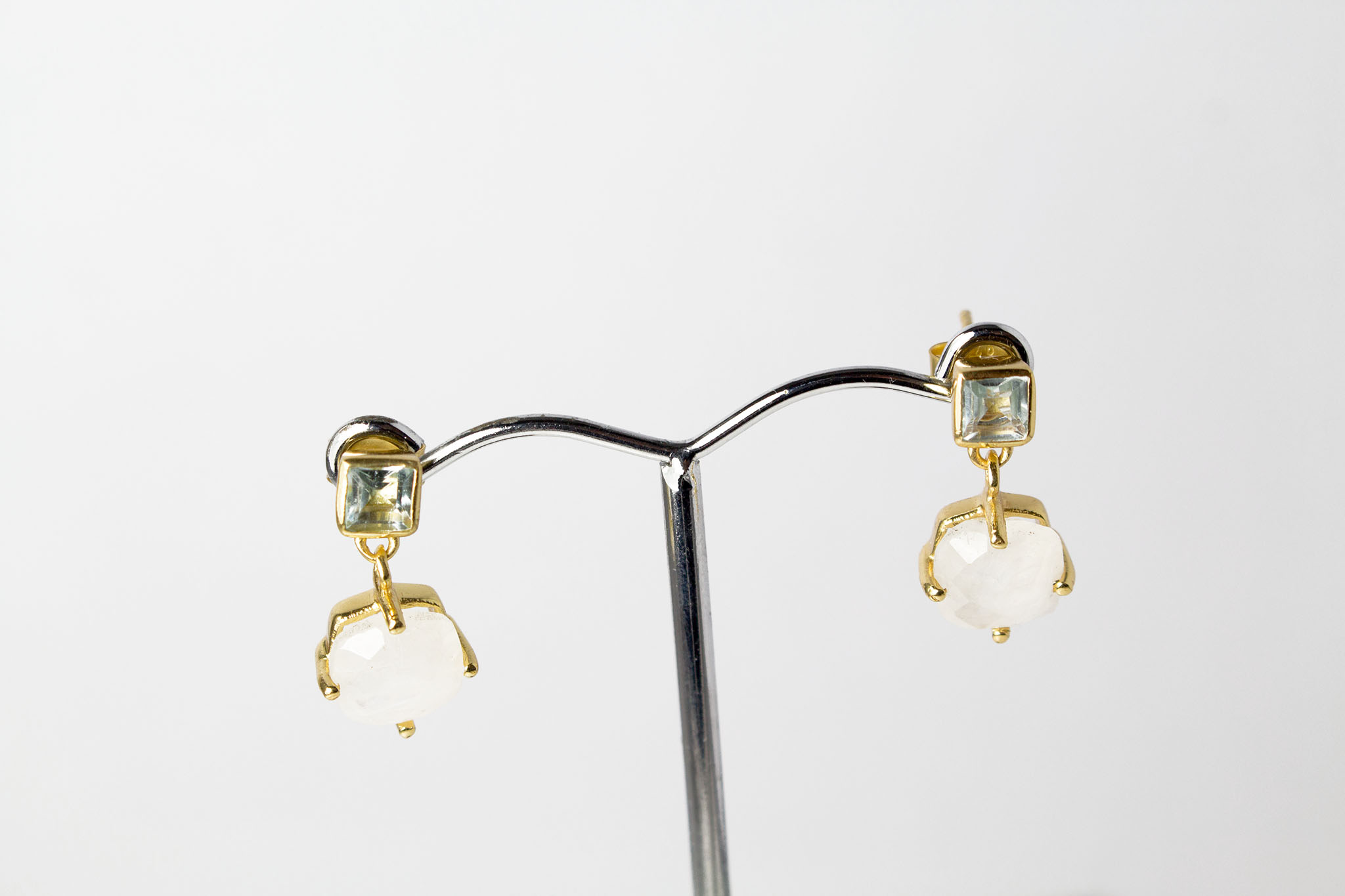 Ohrstecker aus 925 Sterlingsilber, vergoldet mit Rainbow Mondstein und Topas.Länge 1,9cmBreite 1cm